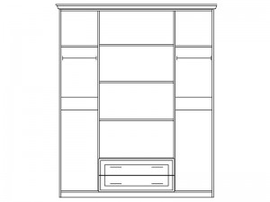 Шкаф Жасмин с четырьмя дверьми и двумя шухлядами Світ Меблів Белый от украинской фабрики "Світ Меблів". Классический шкаф в итальянском стиле, характеризуется изысканным дизайном, роскошными формами с оригинальными ручкам, сочетающиеся с художественной росписью на фасадах и зеркалами. Шкаф разделен на три секции, в крайних имеется штанга для тремплей и одна полка, в средней - четыре полки одинаковой высоты и два выдвижных ящика. Выдвижные ящики на направляющих полного выдвижения, что гарантирует плавность при выдвижении и долговечность. Шкаф Жасмин достоин королевских апартаментов.