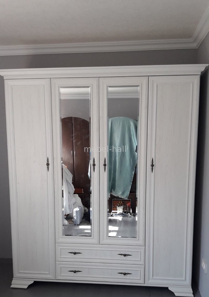 Распашной шкаф с зеркалами 4 двери 2 шухляды Ирис Мебель Сервис ДСП Андерсон Пайн