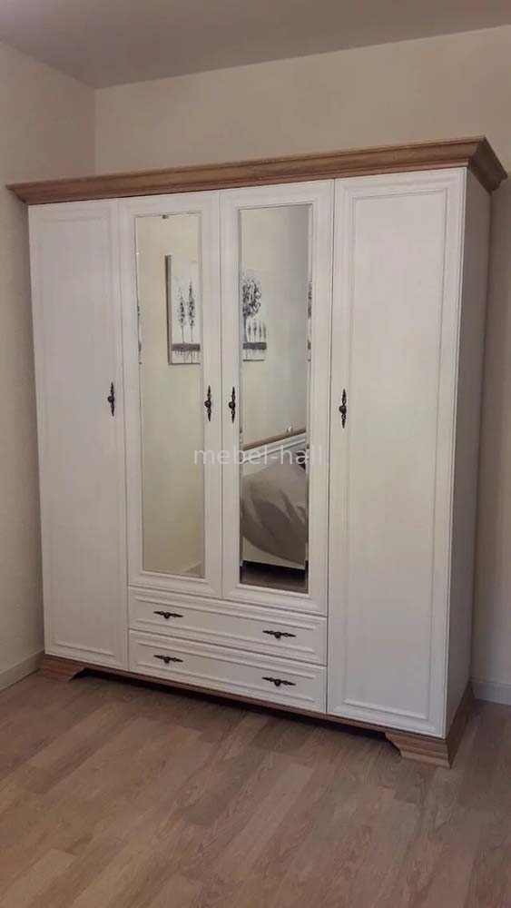 Распашной шкаф с зеркалами 4 двери 2 шухляды Ирис Мебель Сервис ДСП Андерсон Пайн и Дуб Золотой