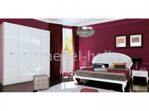 Модульная мебель для спальни Империя в классическом стиле в белоснежном глянцевом цвете от украинской мебельной фабрики MiroMark. Изысканный дизайн, утонченный стиль, высокое качество исполнения, оригинальные металлические хромированные ручки, помогут оформить стильный интерьер спальной комнаты.