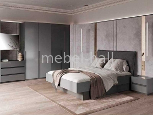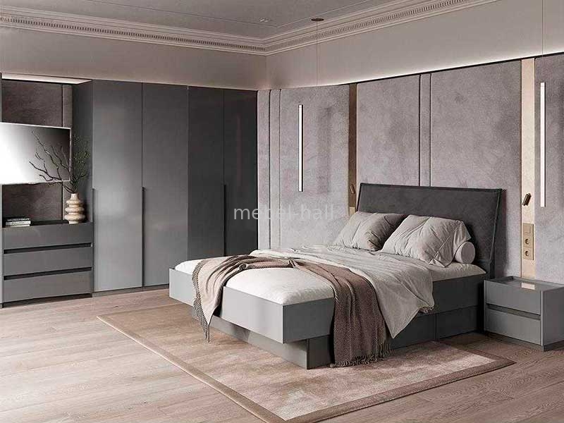 Мебель выполнена урбанистическом стиле от украинской мебельной фабрики MiroMark. Современный дизайн, экстравагантный графитовый цвет, скрытые пластмассовые ручки в цвете алюминий, помогут оформить стильный интерьер спальной комнаты.