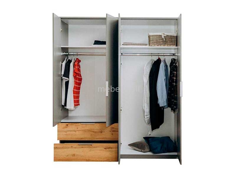 Распашной шкаф 4 двери и 2 шухляды для спальни Линц MiroMark ДСП Серый Шифер / Дуб Вотан