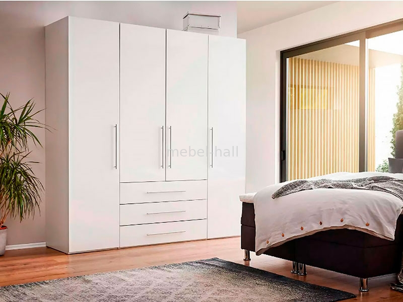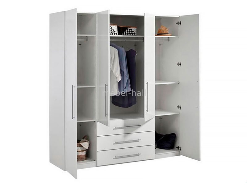 Шкаф распашной 4 двери 3 шухляды Магнум MiroMark ДСП Белый Глянец / Белый