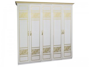 Шкаф Полина Новая с пятью дверьми Світ Меблів Белый от украинской фабрики "Світ Меблів". Классический шкаф в итальянском стиле, характеризуется изысканным дизайном, роскошными формами с оригинальными ручкам, сочетающиеся с художественной росписью на фасадах. Шкаф имеет три секции, крайние секции имеют штангу для тремплей и одну полку сверху, средняя - пять полок одинаковой высоты. Шкаф Полина Новая достоин королевских апартаментов.