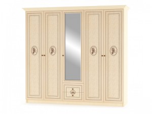 Шкаф 5Д Флорис с пятью дверьми от украинской фабрики "Мебель-Сервис". Классический шкаф с оригинальным решением фасадов, выполненных из ламинированного ДСП отлакированного с нанесенными методом шелкографии рисунками. Направляющие на ящиках телескопические, что гарантирует плавность при выдвижении и долговечность. Характеризуется правильными геометрическими формами, прямыми линиями, простым и лаконичным исполнением, который создаст уют и крепкий сон в вашей спальне.