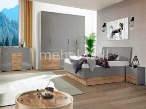 Мебель выполнена в урбанистическом стиле от украинской мебельной фабрики MiroMark. Современный дизайн, сочетание серого цвета с натуральным дубом, продолговатые пластиковые ручки покрытые сатином, помогут оформить стильный интерьер спальной комнаты.