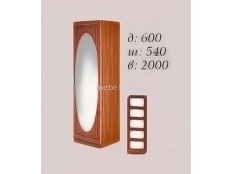 Распашной шкаф пенал 600 с зеркалом и полками Василиса Мастер Форм