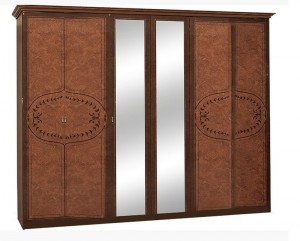 Шкаф Опера с шестью дверьми Світ Меблів Пино Орех от украинской фабрики "Світ Меблів". Классический шкаф в итальянском стиле, характеризуется изысканным дизайном, роскошными формами с изящной художественной печатью на фасадах и зеркалами на центральных дверях. В середине шкаф разделен на три секции, в каждой из них размещена ниша с штангой для тремплей, в крайних имеется одна полка вверху, а в средней - полка внизу. Шкаф Опера достоин королевских апартаментов.