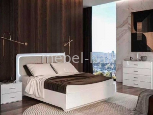 Мебель выполнена в современном стиле от украинской мебельной фабрики MiroMark. Органичный дизайн, чисто белый цвет, хромированные ручки, помогут оформить стильный интерьер спальной комнаты.
