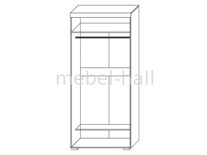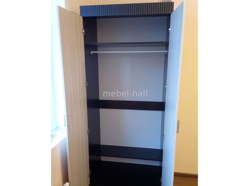 Внутри шкаф имеет 2 полки и штангу для вешалок. Изделие оснащено качественной мебельной фурнитурой.