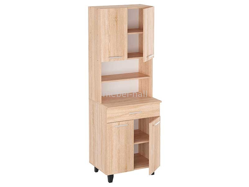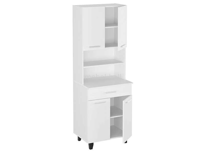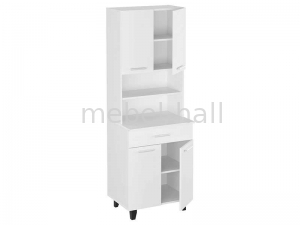 Шкаф имеет две двери вверху и внизу, посередине выдвижной ящик на роликовых направляющих, и две открытые полки. Такая конструкция позволит удобно разместить посуду и предметы интерьера. Большой выбор цветов позволит подобрать тот который гармонично впишется в Ваш интерьер.
