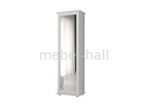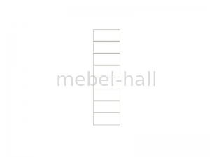 Шкаф имеет 1 дверь с зеркалом и внутри 8 полок одинаковой высоты.