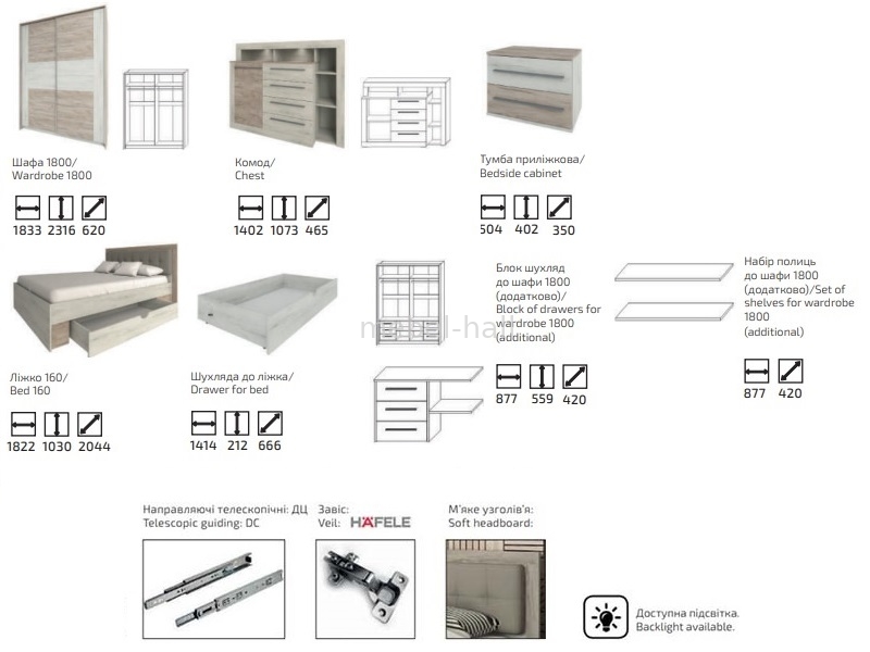 Мебель Милана включает в себя идеально гармонирующие друг с другом модули для создания идеального интерьера спальни.