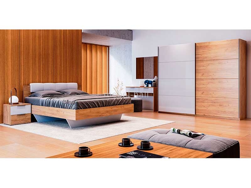 Мебель выполнена в современном стиле с сочетанием белого глянца на фасадах и древовидной текстуры дуба от украинской мебельной фабрики MiroMark. Привлекательный дизайн, новейшие тенденции, помогут оформить стильный интерьер комнаты.