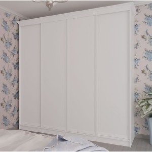 Количество фасадов: 4шт ЛДСП белое с элементами декора (алюминиевая раздвижная система).