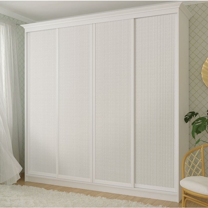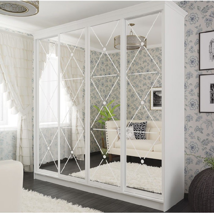 Шкаф-купе белый четырех дверный Рим-Венециано Ш240хВ240хГ60 см зеркало с декором