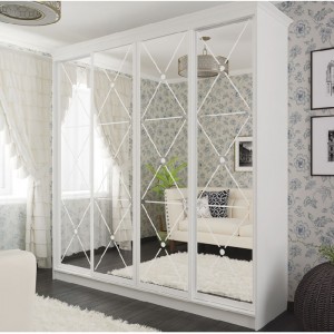Количество фасадов: 4шт ЛДСП белое с элементами декора (алюминиевая раздвижная система).