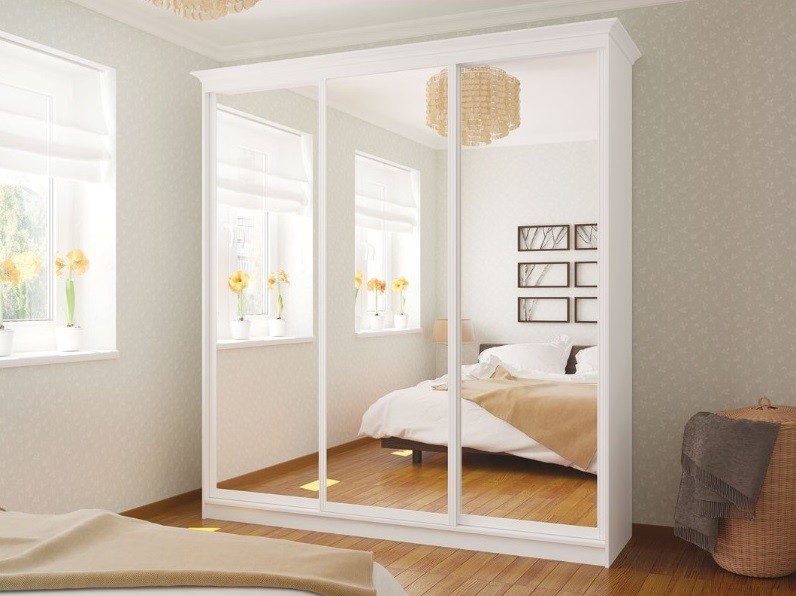 Шкаф-купе белый трех дверный Рим-Венециано Ш180хВ240хГ60 см зеркало с декором
