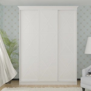 Количество фасадов: 3шт ЛДСП белое с элементами декора (алюминиевая раздвижная система).