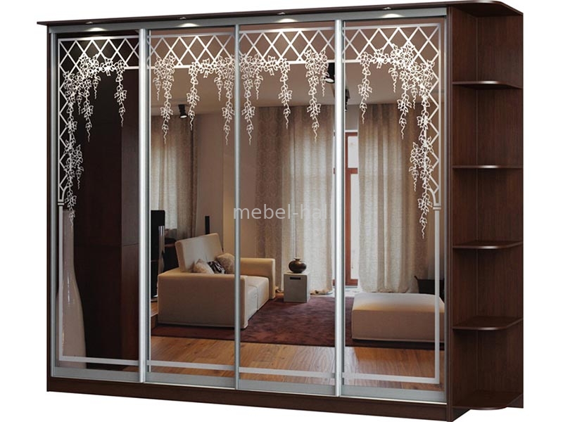 Наш интернет магазин «Мебель Холл Николаев» предлагает вам купить доступный по цене четырехдверный шкаф-купе, размером Ш 280*В 240*Г 60 см с пескоструйным узором на фасадах на специальных регулируемых ножках. Можем легко оформить кредит или рассрочку на всю покупку.