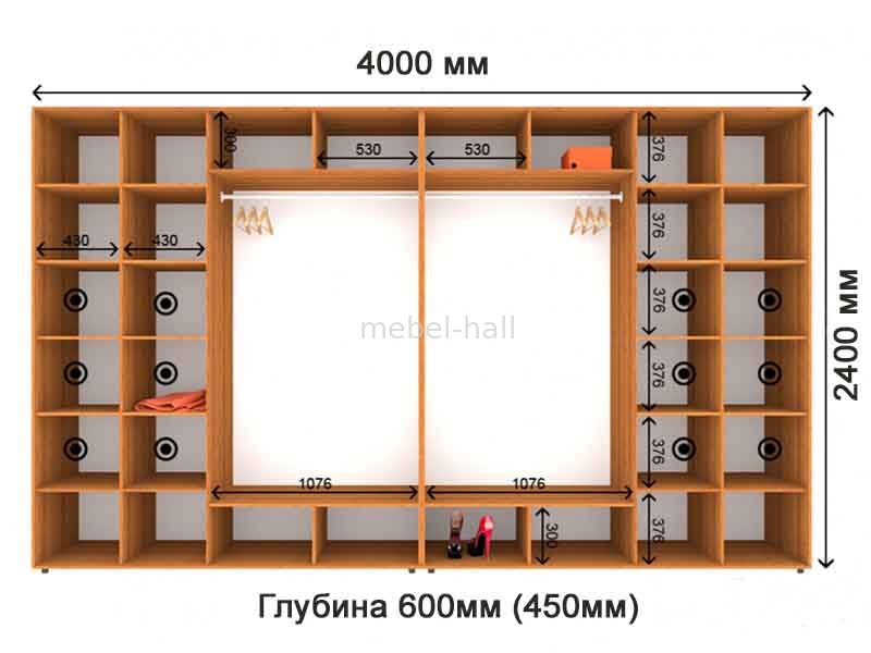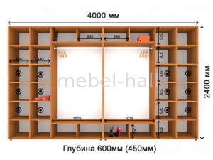 Шкаф-купе четырехдверный Ширина 400 Высота 210 Глубина 60 см