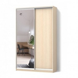 Предлагаем Вам фабричный складской двухдверный недорогой шкаф купе с зеркальными дверями, шириной 1,3 метра; высота 2,1 м; глубина 0,6 м. Фасады на выбор: дсп ламинированное, зеркало, зеркало плюс дсп. Шкаф купе есть на складе, звоните уточняйте цвет. Можем изготовить под заказ, после выбора наполнения фасадов.
