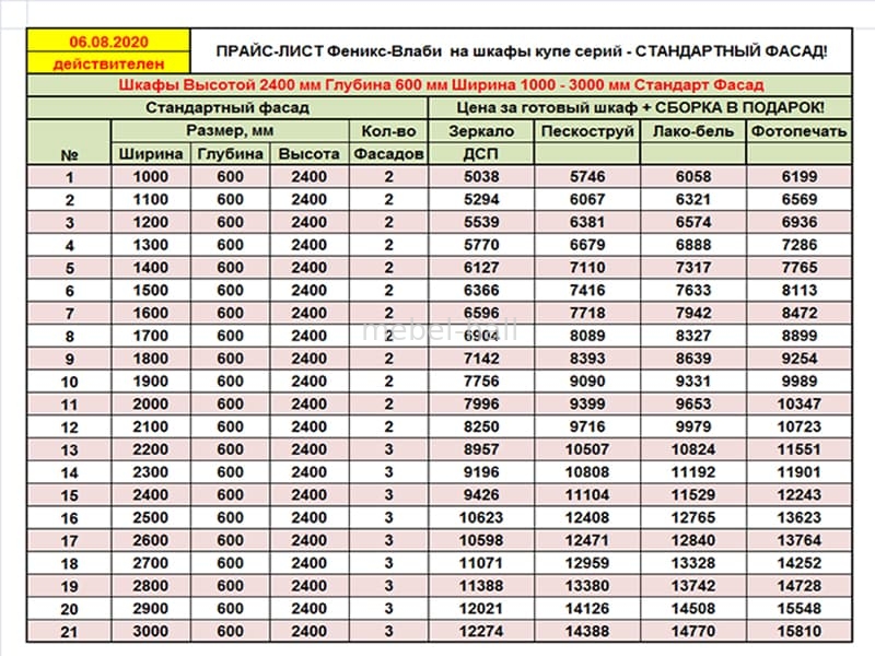 При заказе системы Венге глянец +15% к стандартной цене шкафа купе!!