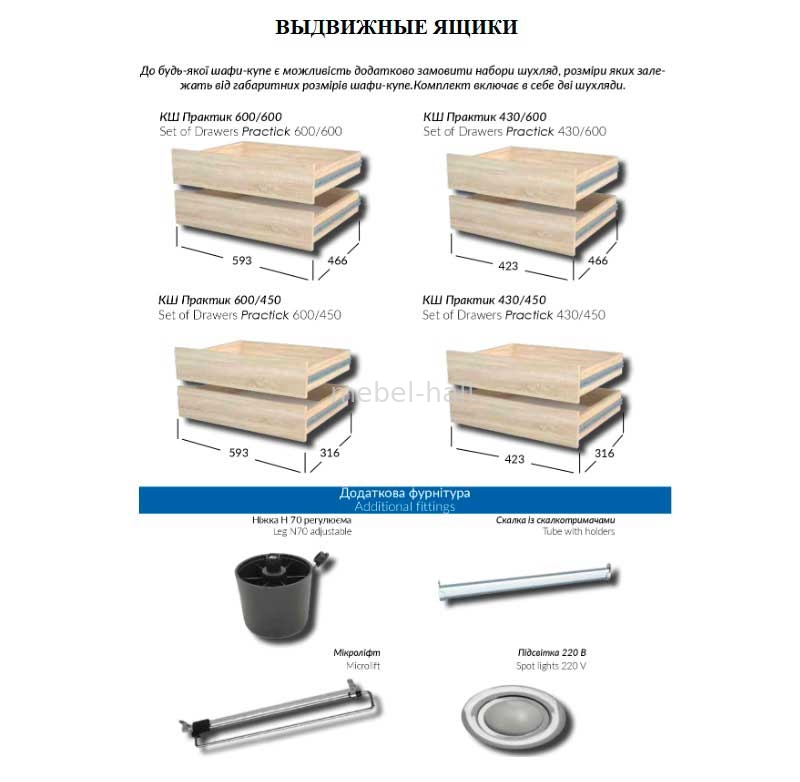 Разные габаритные размеры и большой ассортимент внутреннего наполнения поможет вам решить проблему хранения ваших вещей.