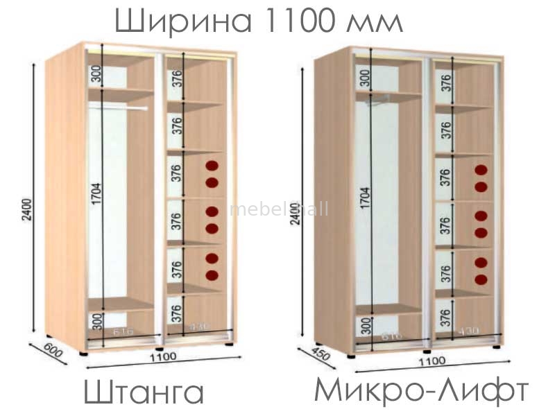 | Тип фасадов ШК: | Зеркало Серебро, ДСП ламинированное, Пескостуйный Узор, Лакобель, Фотопечать, Зеркало с декором, Зеркало Графит, Зеркало Бронза, Комби зеркало с ДСП, Комби зеркало фотопечать, Комби зеркало лакобель |