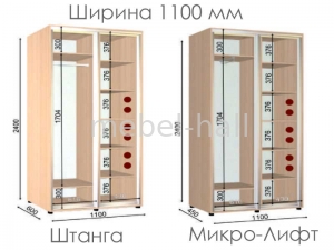 Шкаф-купе ширина 1100 высота 2400 глубина 450мм ШК-02/2400