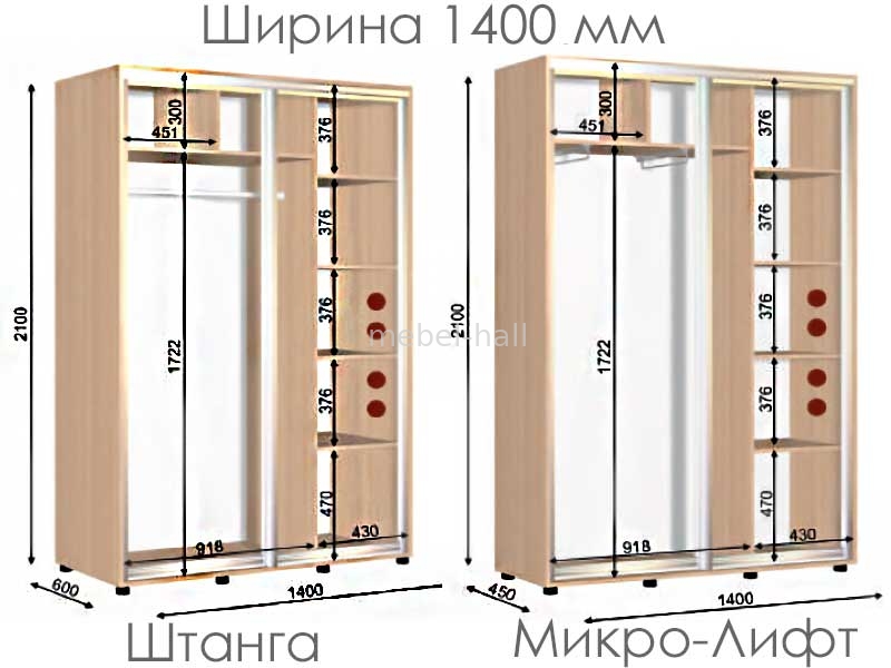 В магазине "Мебель Холл Николаев", вы можете купить, как готовый шкаф купе, так и заказной по индивидуальным размерам.