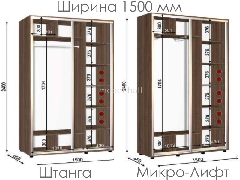 Любые изменения в размерах, с шагом в 1 см, возможность отдельно купить полки, штанги, ящики, подсветку.