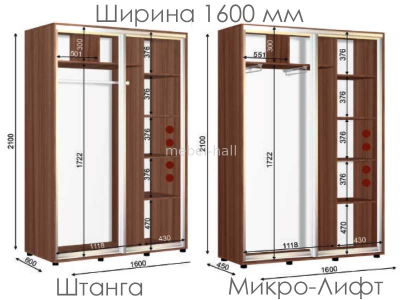 В магазине "Мебель Холл Николаев", вы можете купить, как готовый шкаф купе, так и заказной по индивидуальным размерам.