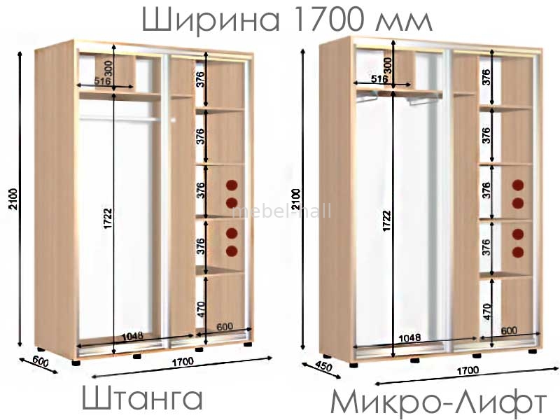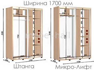 Шкаф-купе ширина 1700 высота 2100 глубина 450мм ШК-08/2100