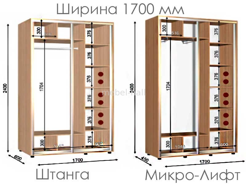 Шкаф-купе ширина 1700 высота 2400 глубина 600мм ШК-8/2400