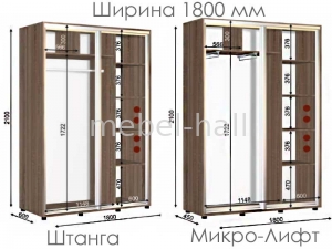 Шкаф-купе ширина 1800 высота 2100 глубина 600мм ШК-9/2100
