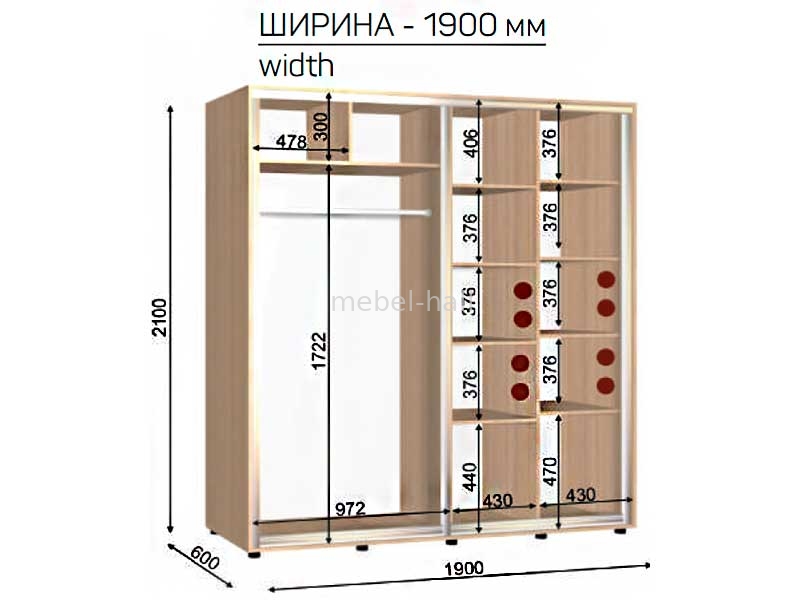 Шкаф-купе ширина 1900 высота 2100 глубина 600мм ШК-10/2100