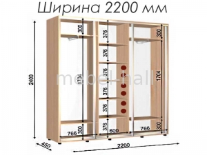 Шкаф-купе ширина 2200 высота 2400 глубина 450мм ШК-013/2400