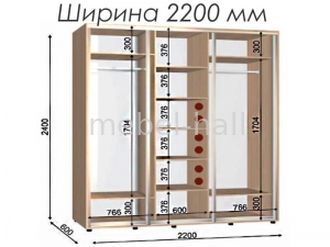 Шкаф-купе ширина 2200 высота 2400 глубина 600мм ШК-13/2400