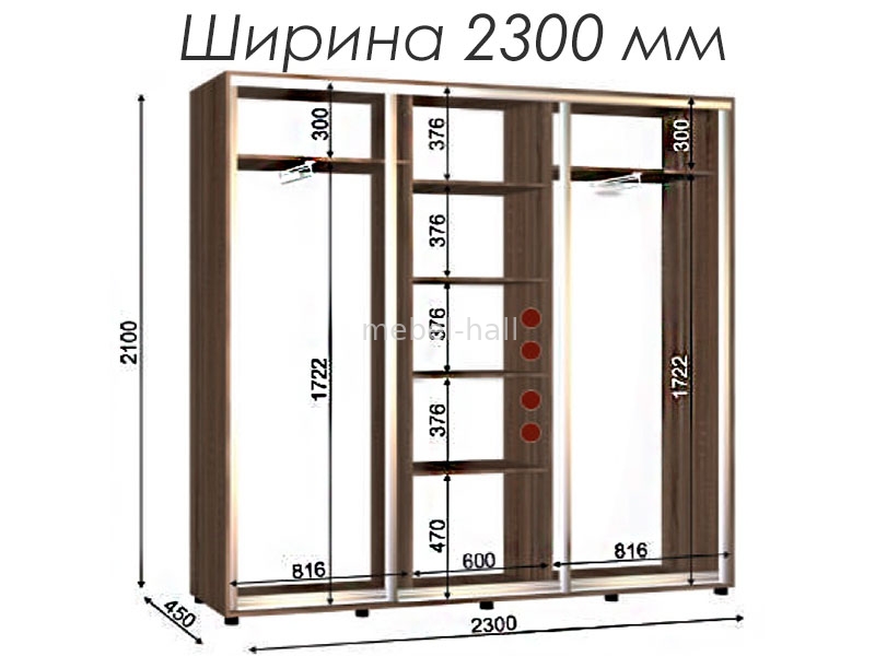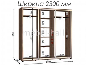 Шкаф-купе ширина 2300 высота 2100 глубина 450мм ШК-014/2100