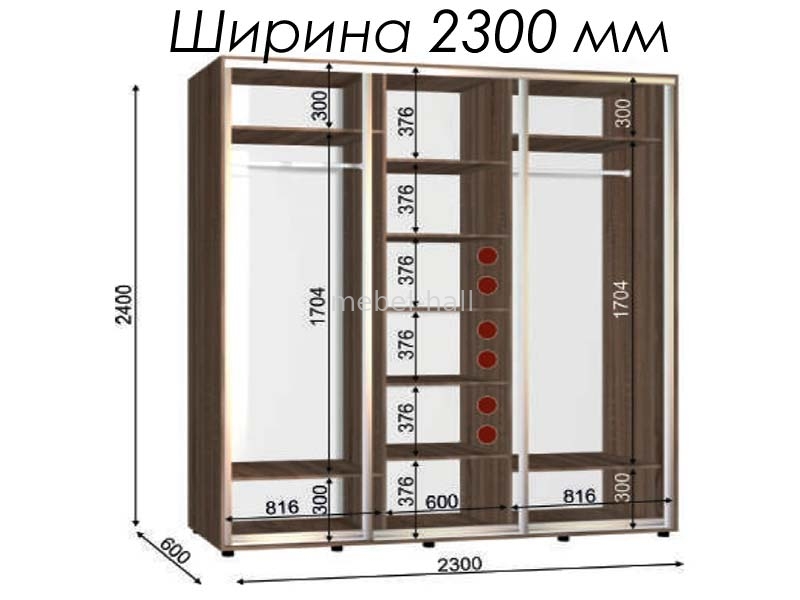 Шкаф-купе ширина 2300 высота 2400 глубина 600мм ШК-14/2400