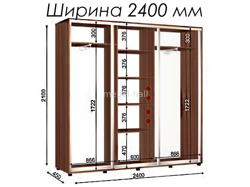 Шкаф-купе ширина 2400 высота 2100 глубина 450мм ШК-015/2100