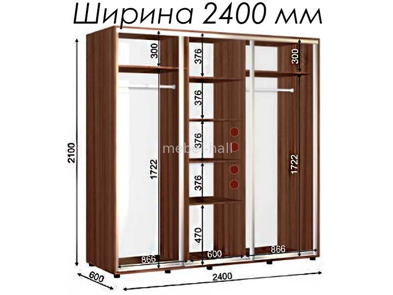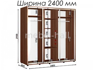 Шкаф-купе ширина 2400 высота 2100 глубина 600мм ШК-15/2100
