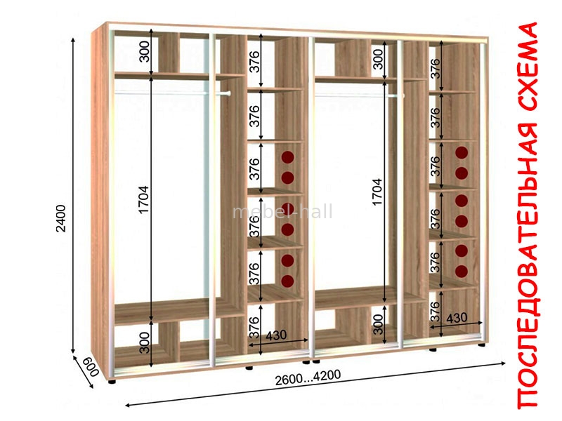 В магазине "Мебель Холл Николаев", вы можете купить, как готовый шкаф купе, так и заказной по индивидуальным размерам.