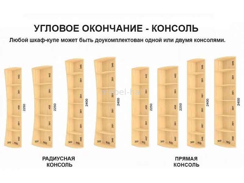 Дополнительно, каждый шкаф можно укомплектовать поворотной консолью, подсветкой и выдвижными ящиками (блок по две штуки).