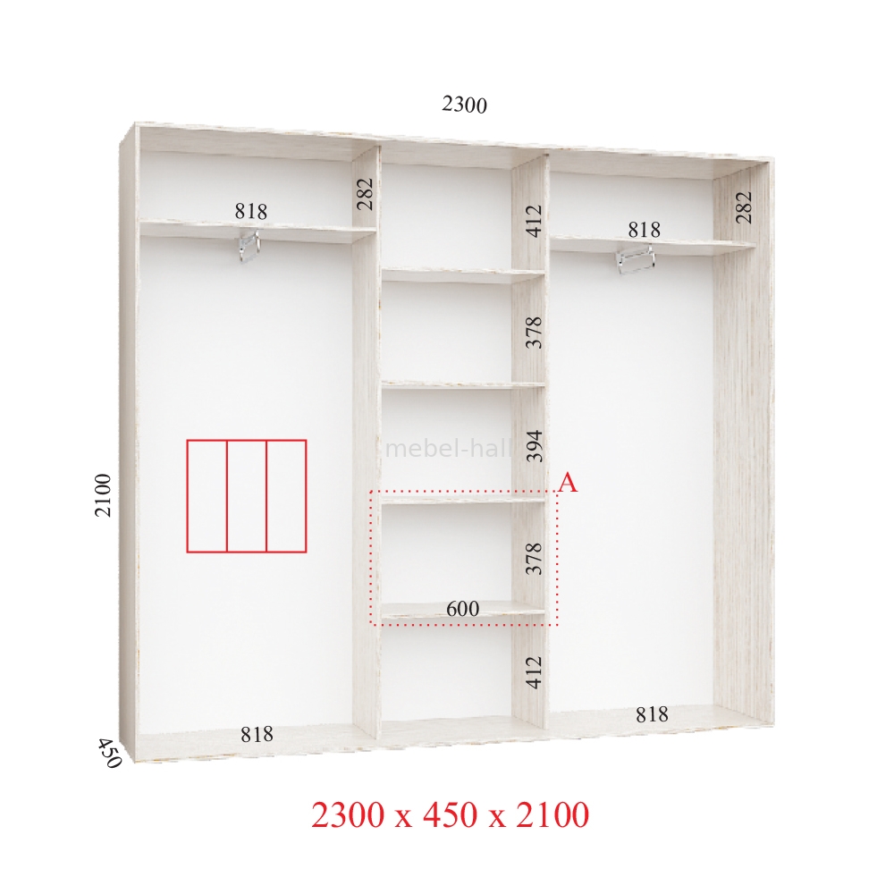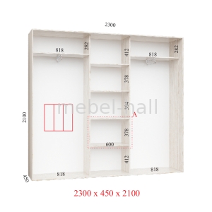 Предлагаем Вам шкаф-купе на три двери, в размере: ширина 2,3 метра; высота 2,1 м; глубина 0,45 м.