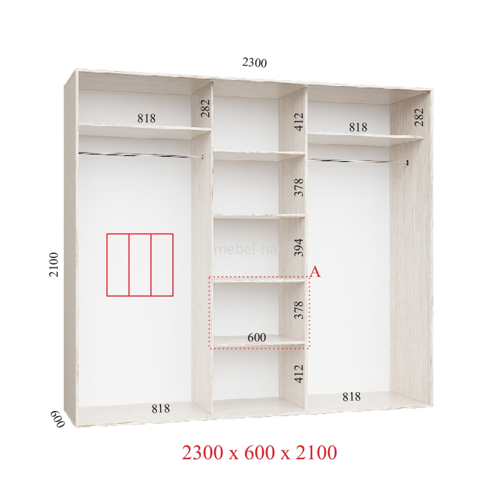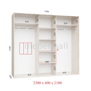 Предлагаем Вам шкаф-купе на три двери, в размере: ширина 2,3 метра; высота 2,1 м; глубина 0,6 м.