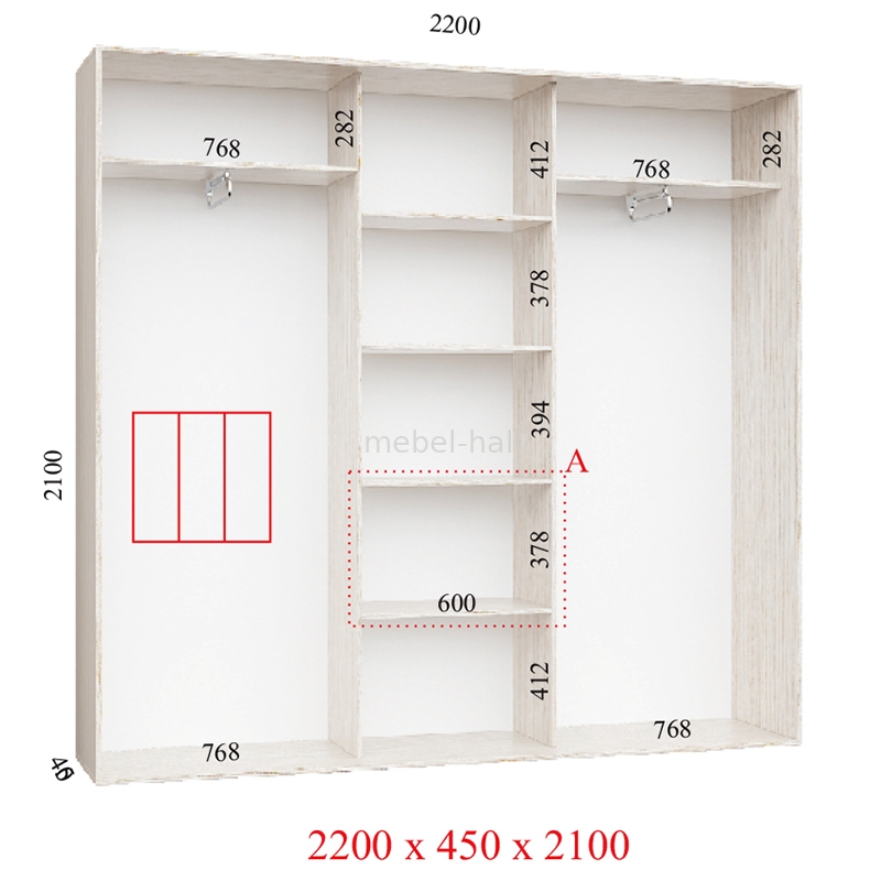 Размер ширина 2,2 метра; высота 2,1 метра; глубина 0,45 метра. Фасады на выбор: фотопечать, лакобель, дсп ламинированное, зеркало, зеркало плюс дсп. Шкаф купе есть на складе, звоните уточняйте цвет. Можем изготовить под заказ, после выбора наполнения фасадов.