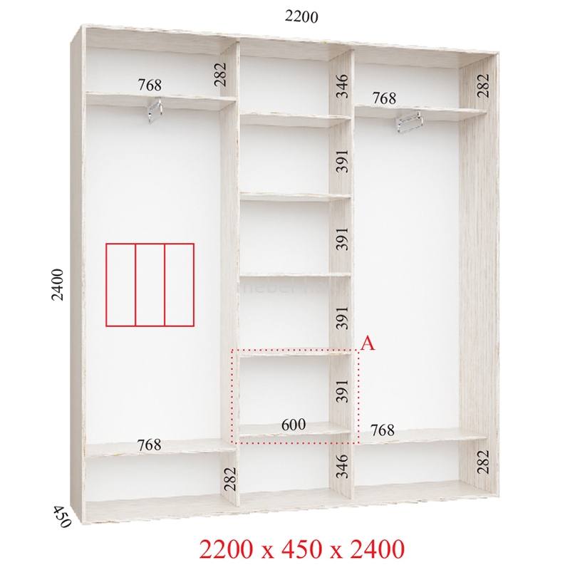 Цена указана на трехдверный шкаф купе с зеркальными фасадами 220*210*45 см с системой серебро!