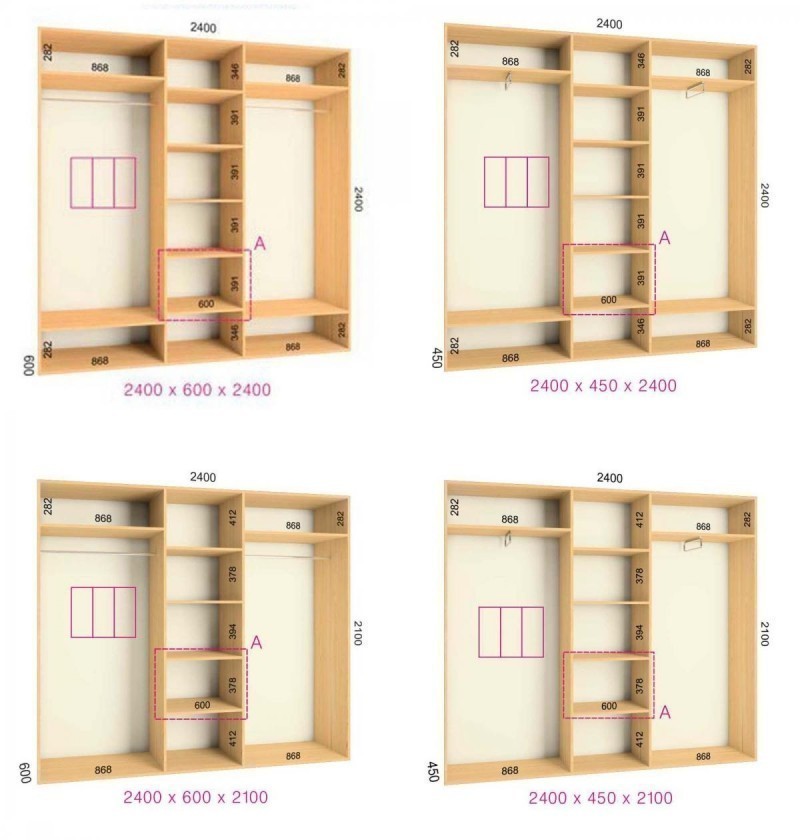 Ширина шкафа 2,4 метра; высота 2,1 метра; глубина 0,45 метра. Фасады на выбор: фотопечать, лакобель, дсп ламинированное, зеркало, зеркало плюс дсп. Шкаф купе есть на складе, звоните уточняйте цвет. Можем изготовить под заказ, после выбора наполнения фасадов.